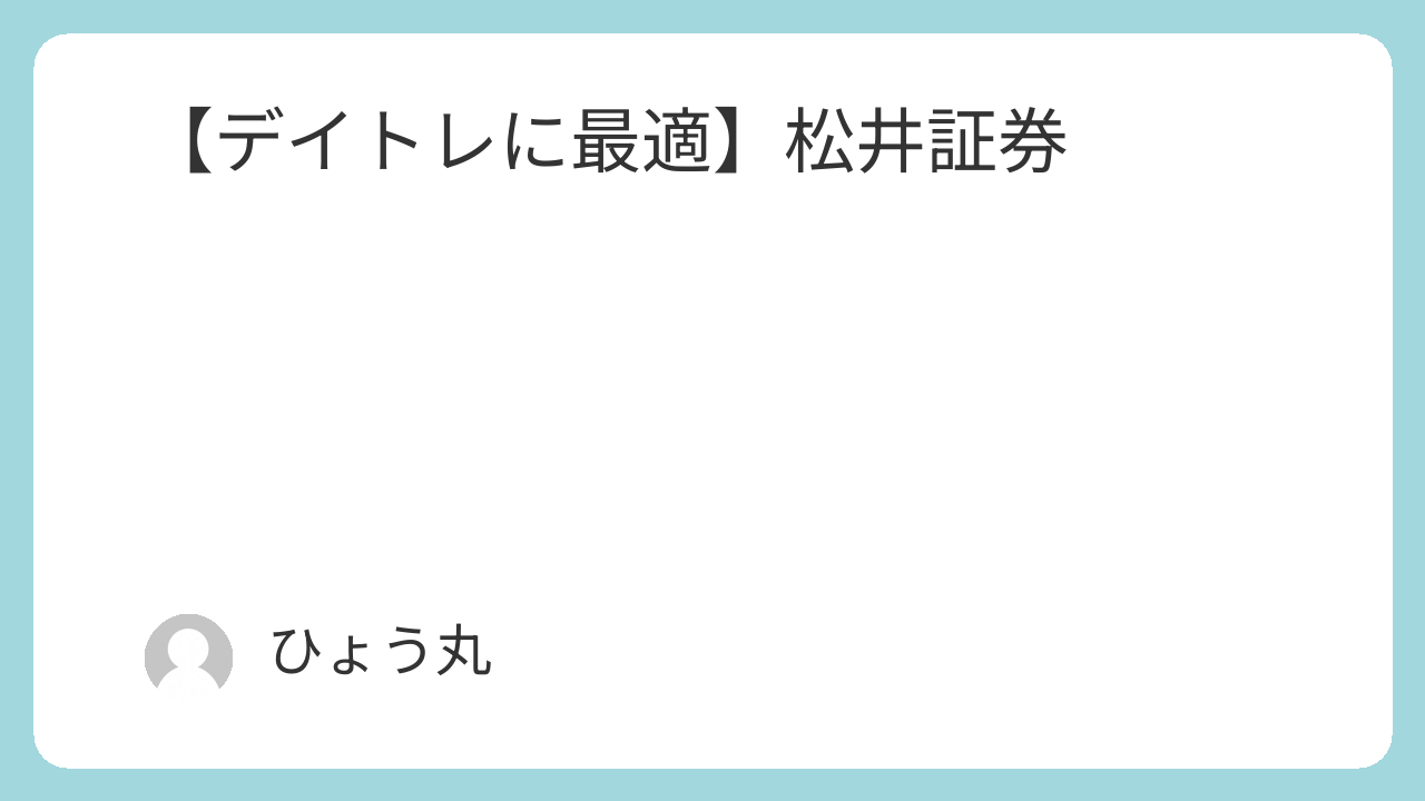ひょう丸は松井証券の口座を使っています。