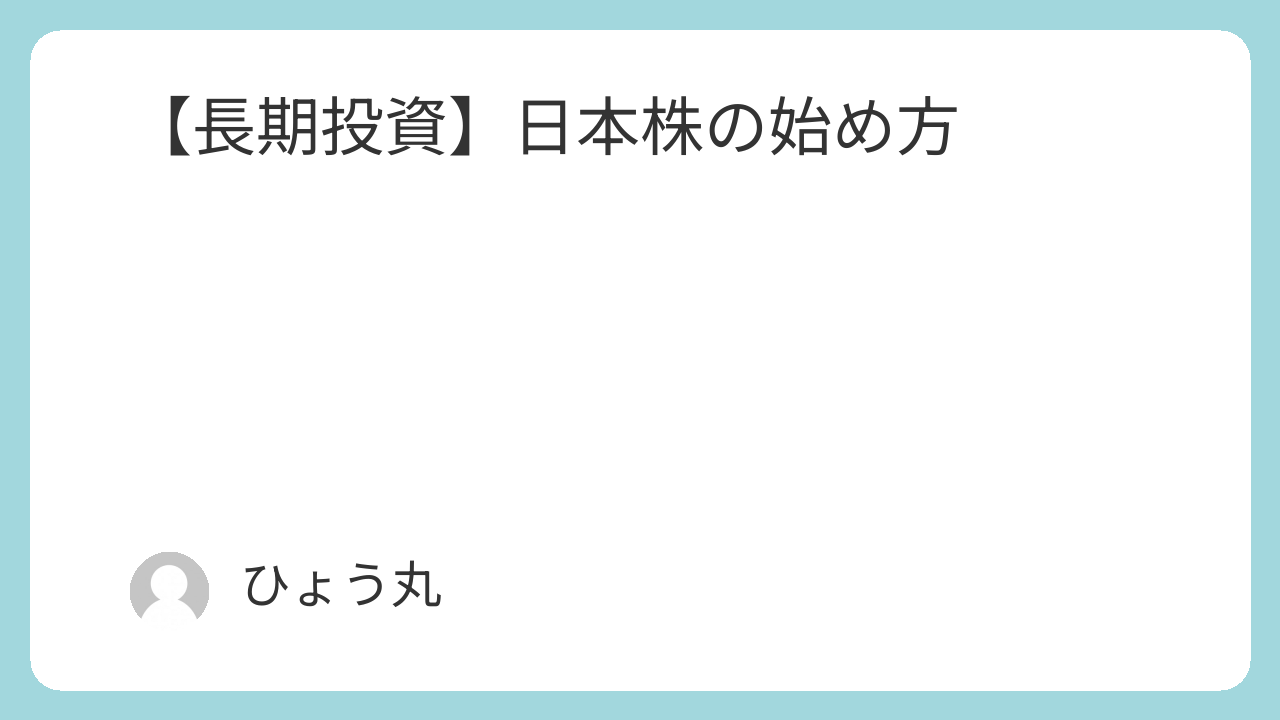 今回は長期投資編の日本株の始め方を説明します。