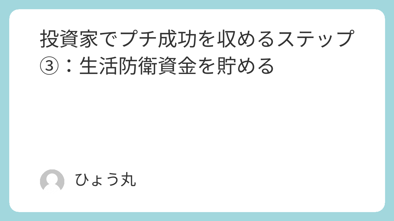 投資家でプチ成功を収めるステップ③:生活防衛資金を貯める