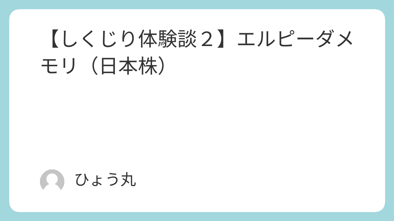 今回はひょう丸のしくじり体験談の第二話「エルピーダメモリ」編を赤裸々に公開します。